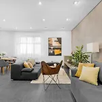 - ❓Există o bucătărie disponibilă la apartamentul spațios pentru oaspeți?Da, apartamentul spațios dotată cu o bucătărie complet utilată și oferă ceainic electric, aparat de cafea/ceai și ustensile de bucătărie.